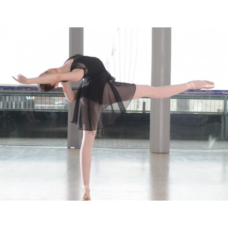 Ladies black wrapover skirt One size, ties at the back which allows it to fit from UK 6 - 16 Beautiful lightweight georgette fabric, ideal for dance classes and performances