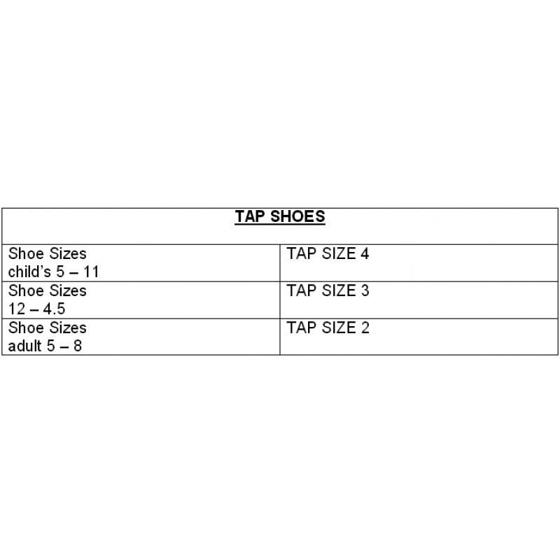 PLEASE SEE PHOTO FOR SIZE CHART. Sizing is for standard low & cuban heel tap shoes.